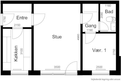 2 værelses lejlighed på Hvitfeltsgade 26, 2TV udlejes